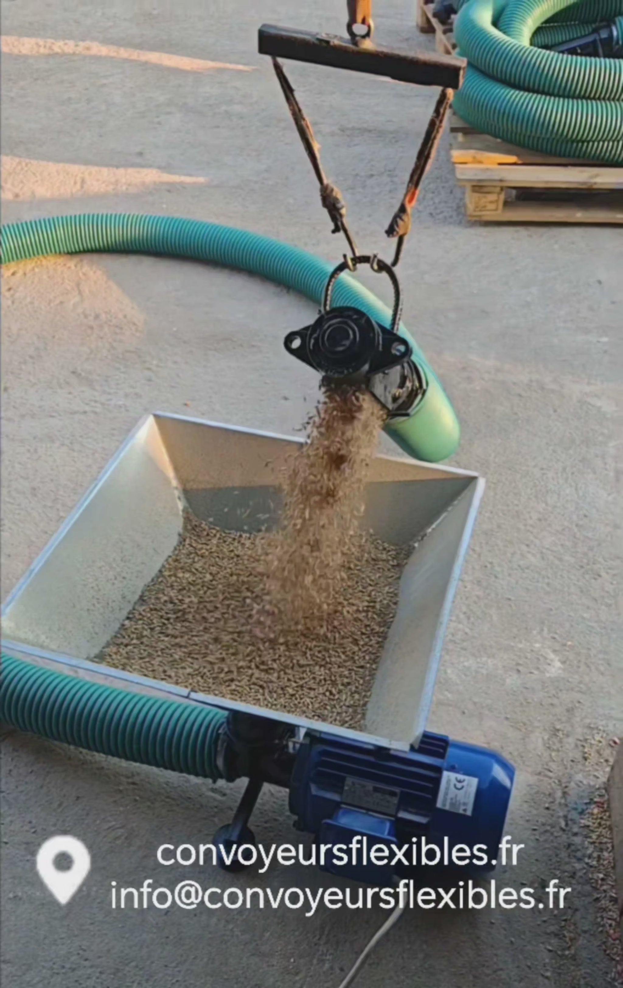 Si vous envisagez d'acheter un Convoyeur à vis flexible - Moteur 380V - Usage industriel - Céréales, sable, sciure, vous devez absolument vous demander si vous pouvez l'utiliser avec une trémie. Il s'agit de la combinaison idéale pour le transport des céréales.
